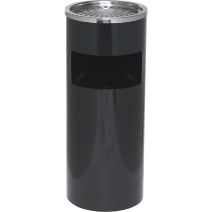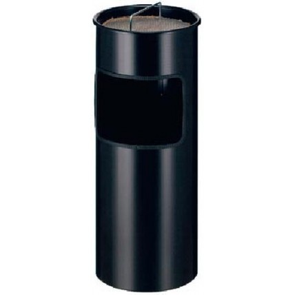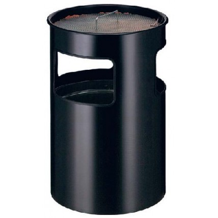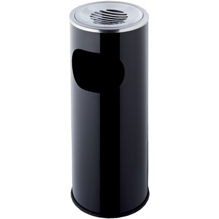 # Cos metalic cu scrumiera incorporata. # Dimensiuni (D x H): 250 x 600 mm. # Culoare: negru.# Capac..