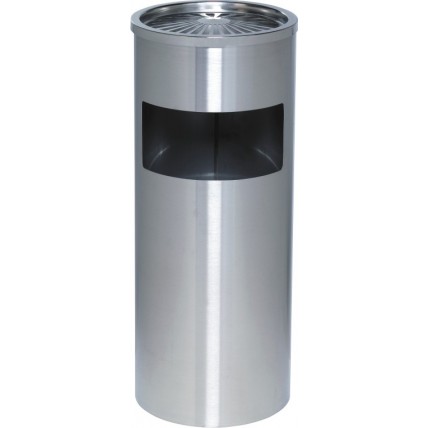 # Cos metalic cu scrumiera incorporata. # Dimensiuni (D x H): 250 x 600 mm. # Culoare: stainless ste..