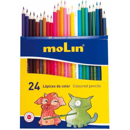 #Corp din lemn vopsit in culoarea scrierii. #Forma hexagonala. #Ambalare: 24 culori/set...