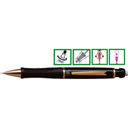 # Corp si accesorii metalice. # Rubber grip ergonomic. # Varf metalic retractabil.# Rezerva: 0,7 mm...