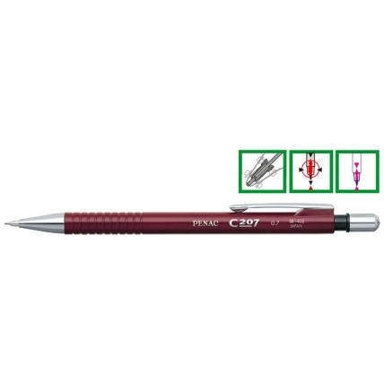 # Corp si accesorii metalice. # Rubber grip ergonomic. # Varf metalic retractabil. # Rezerva: 0,7 mm..