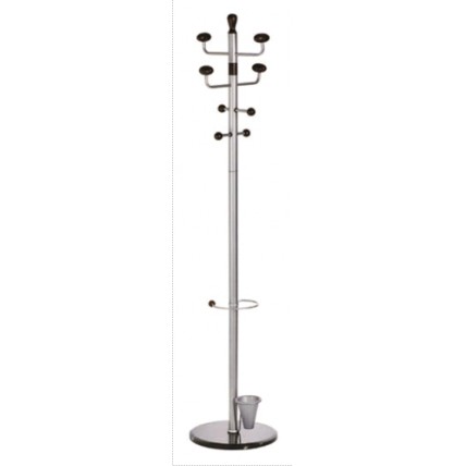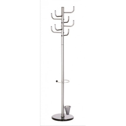 # Cuier metalic vopsit argintiu cu baza rotunda din marmura pentru stabilitate. # Suport detasabil d..