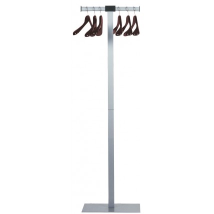 # Cuier metalic cromat. # Echipat cu 8 agatatori de culoare neagra. # Inaltime :175 cm. # Suport de ..