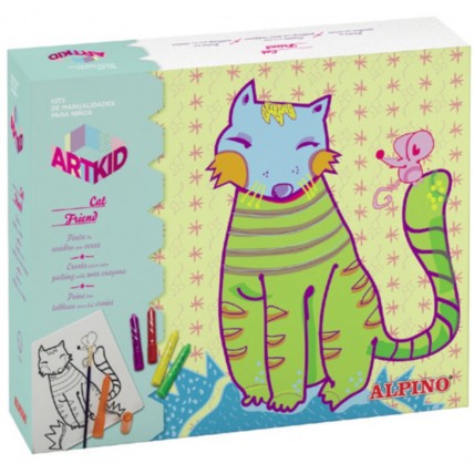 # Creeaza o pictura cu creioane cerate. # Cutia Cat Friend contine: 1 panza predecorata, 12 creioane..
