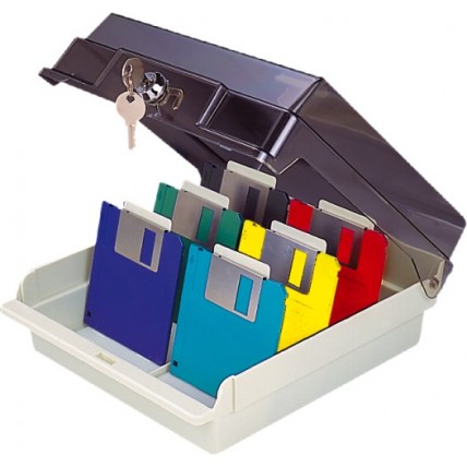 Cutie din plastic pentru stocarea 100 dischete ;de birou; cu 2 chei ; organizare si design modern;..