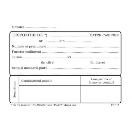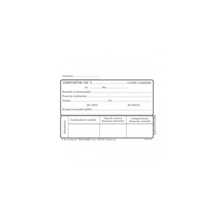 #Dispozitie de plata pentru casierie, autocopiativ. #Format: A6. #50 set/carnet...