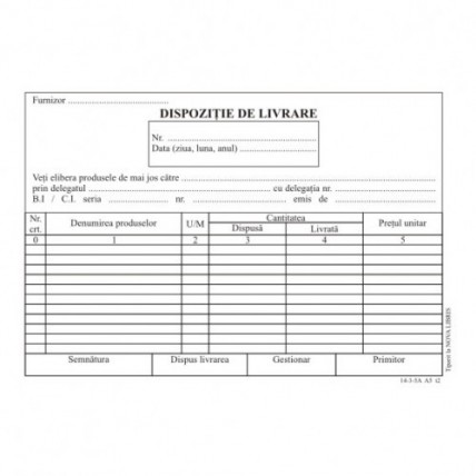 # Dispozitie livrare. # Tipizat pentru activitatea de birou. # Tabelurile sunt construite conform le..