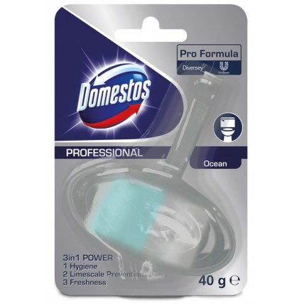 # Odorizant solid pentru toaleta Domestos Ocean. # Se prinde pe marginea toaletei astfel incat ingre..