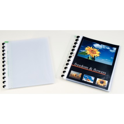 # Coperti rigide din PVC. # Buzunar cu eticheta pe cotor pentru personalizare. # Folii din polipropi..