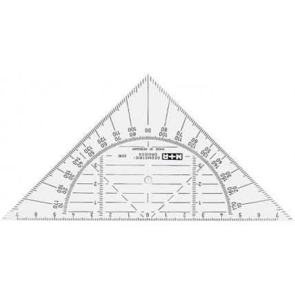 # Pentru desen tehnic. # Triunghi din plastic transparent cu raportor. # Ambalate individual..