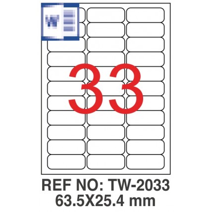 # Etichete albe autoadezive. # Numar etichete pe coala: 65. # Dimensiuni: 38.1 x 21.2 mm. # Ambalare..