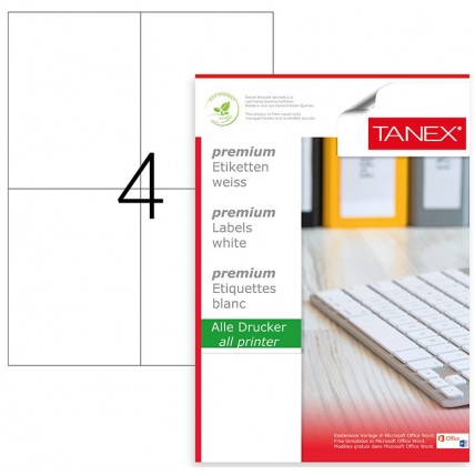 # Etichete albe autoadezive. # Numar etichete pe coala: 4. # Dimensiuni: 192 x 59 mm. # Ambalare: 25..