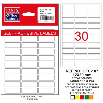 # Dimensiuni: 12 x 30 mm. # Culoare: alb. # Ambalare: 300 buc/set...