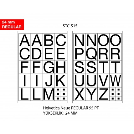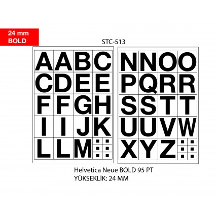 # Format: litere A-Z - bold. # Dimensiuni: 24 x 24 mm. # Ambalare: 2 folii/set..