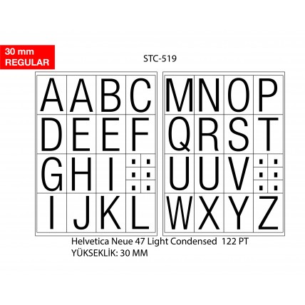 # Format: litere A-Z - regular. # Dimensiuni: 30 x 30 mm. # Ambalare: 2 folii/set..