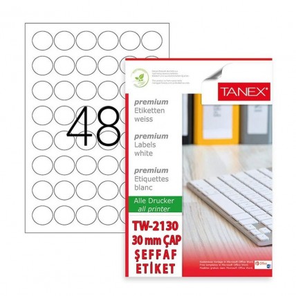 # Etichete rotunde polyester albe autoadezive. # Numar etichete pe coala: 48. # Diametru: 30 mm. # A..