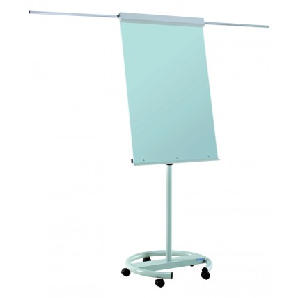 #Flipchart echipat cu clema si suspensii flexibile pentru hartie. #Panoul din spate din sticla mata ..