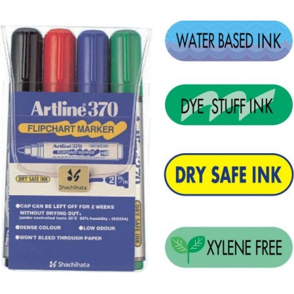 #Varf rotund de 2 mm. #Corp din plastic. #Pentru scriere pe rezerva de hartie (flipchart). #4 culori..