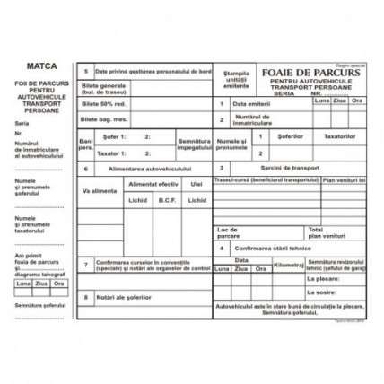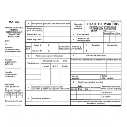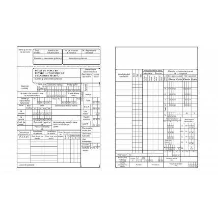 # Foaie de parcurs pentru autovehicule de transport marfa. # Format: A4. # Ambalare: 100 coli/carnet..