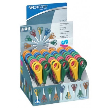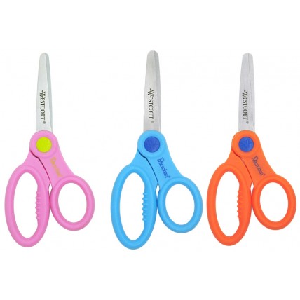 # Foarfeca cu varf rotund si maner din plastic. # Lame de care nu se lipsesc materialele cu adeziv. ..