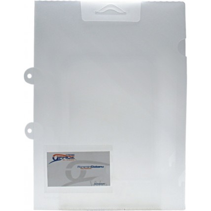 # Cu 2 perforatii pentru indosariere. # A4 transparenta, prevazuta cu buzunar pt. carti de vizita, p..