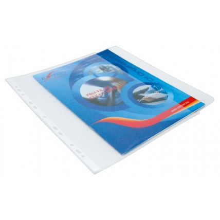 # Folie transparenta din polipropilena (PP) cu perforatii standard pentru indosariere. # Deschidere ..