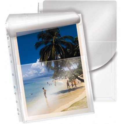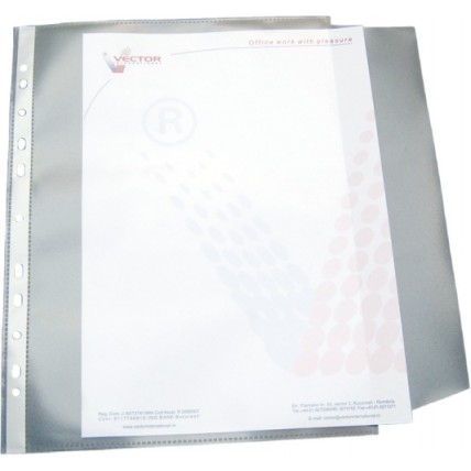 # Folie transparenta din polipropilena (PP) cu perforatii standard pentru indosariere. # Clapa later..