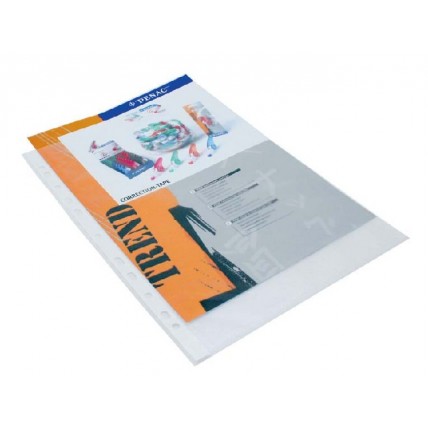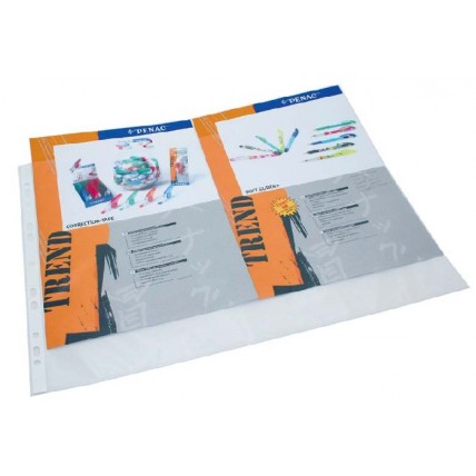 # Folie transparenta cu perforatii standard pentru indosariere. # Deschidere: sus. # Grosime: 80 mic..