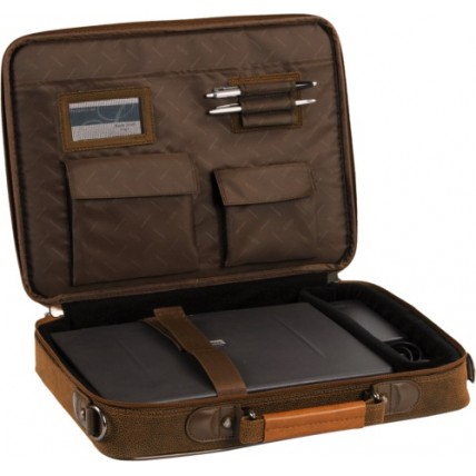 # Confectionata pentru laptop din imitatie piele neagra DuraHide # Compartimentul este integral capt..