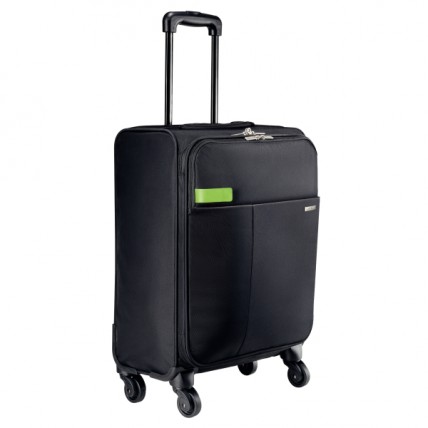#Poliester usor, robust, rezistent la apa, fermoare din metal si sistem pe 4 roti pentru o utilizare..