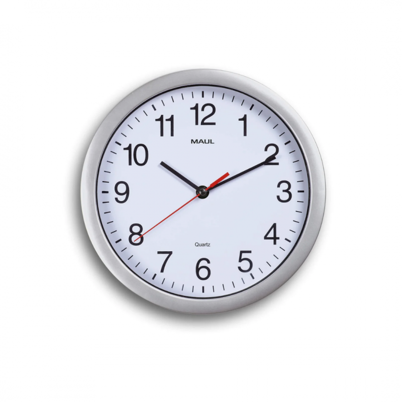 Ceas de perete, D-25 cm, cifre arabe, cadran alb, MAUL Run - rama plastic argintie