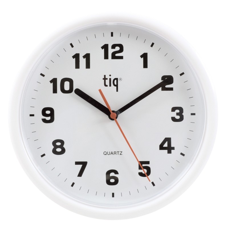Ceas rotund de perete, D-245mm, cifre arabe, TIQ - rama plastic alba - dial alb