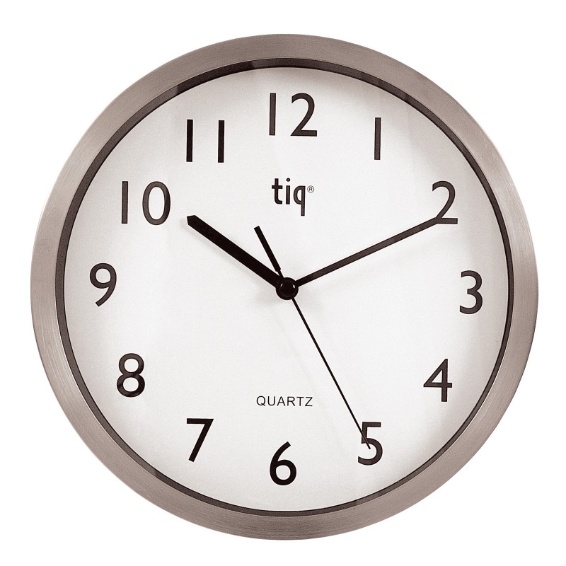 Ceas rotund de perete, D-250mm, cifre arabe, TIQ - rama aluminiu - dial alb