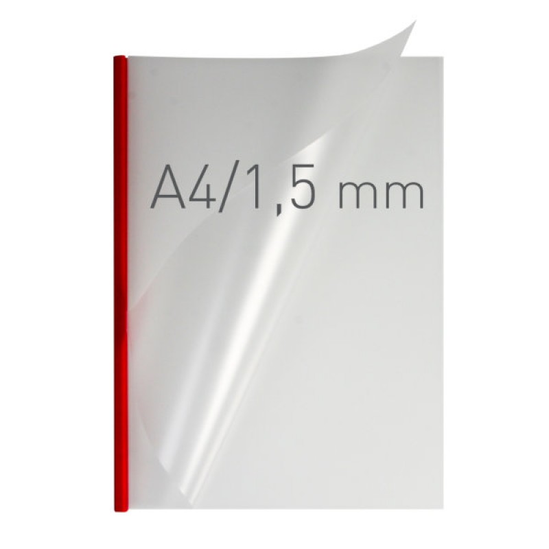 Coperti plastic PVC cu sina metalica 1.5mm, OPUS Easy Open - transparent cristal/rosu