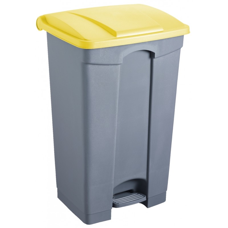 Cos dreptunghiular cu pedala, pentru reciclare, 87 litri, HELIT - corp gri - capac galben