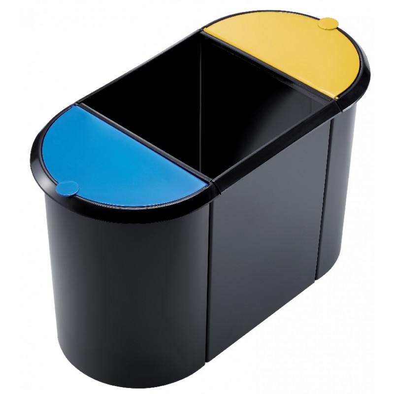 Cos plastic cu 3 separatoare (1x20l si 2x9l), pentru reziduuri, HELIT - negru/albastru/galben
