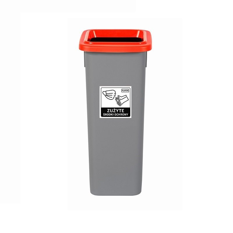 • Cos plastic reciclare selectiva, capacitate 20l, PLAFOR Fit - gri cu capac rosu - metal