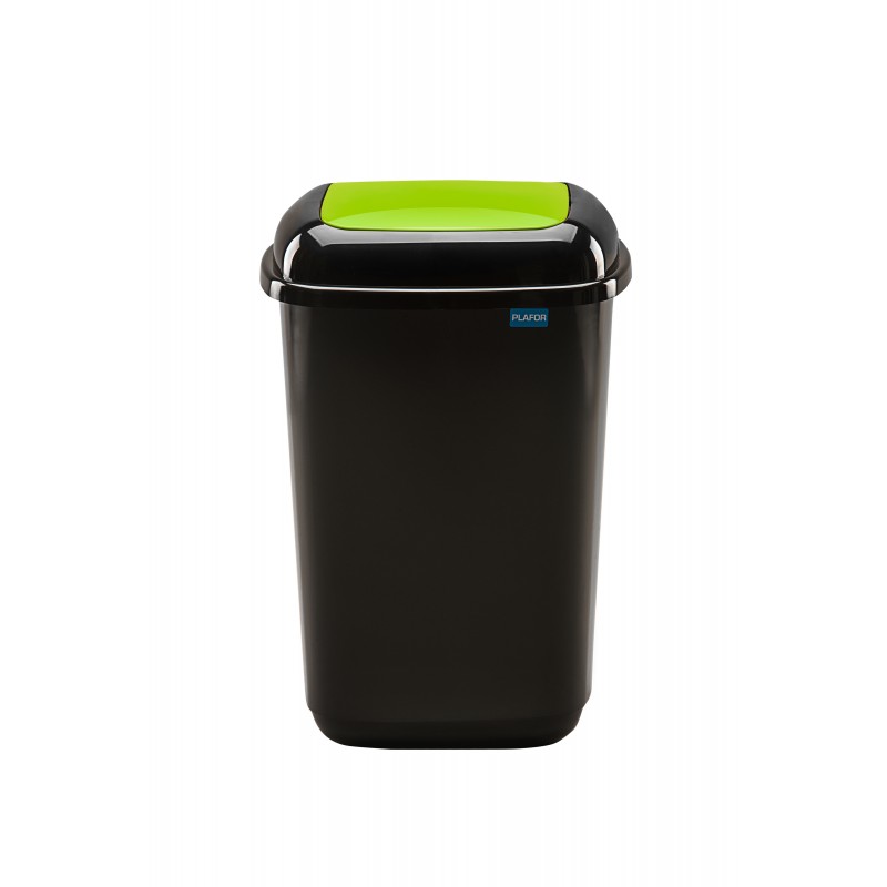 • Cos plastic reciclare selectiva, capacitate 45l, PLAFOR Quatro - negru cu capac verde - sticla