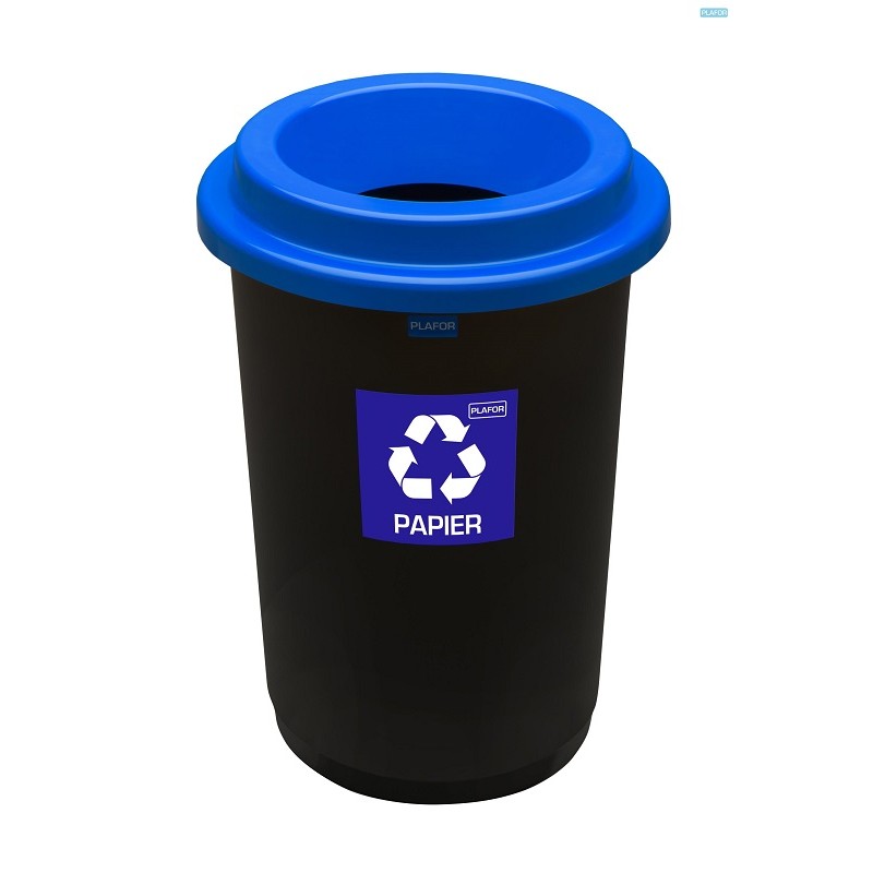 • Cos plastic reciclare selectiva, capacitate 50l, PLAFOR Eco - negru cu capac albastru - hartie