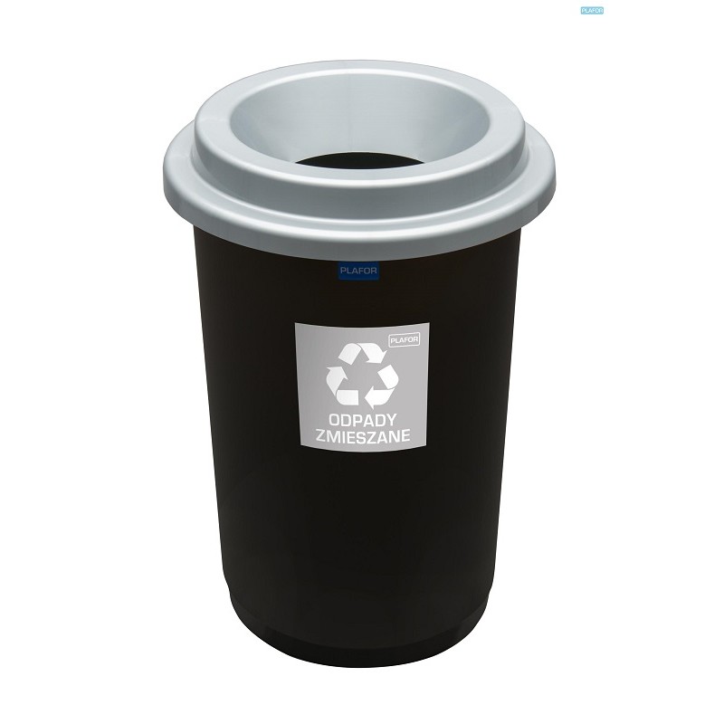 • Cos plastic reciclare selectiva, capacitate 50l, PLAFOR Eco - negru cu capac argintiu - altele