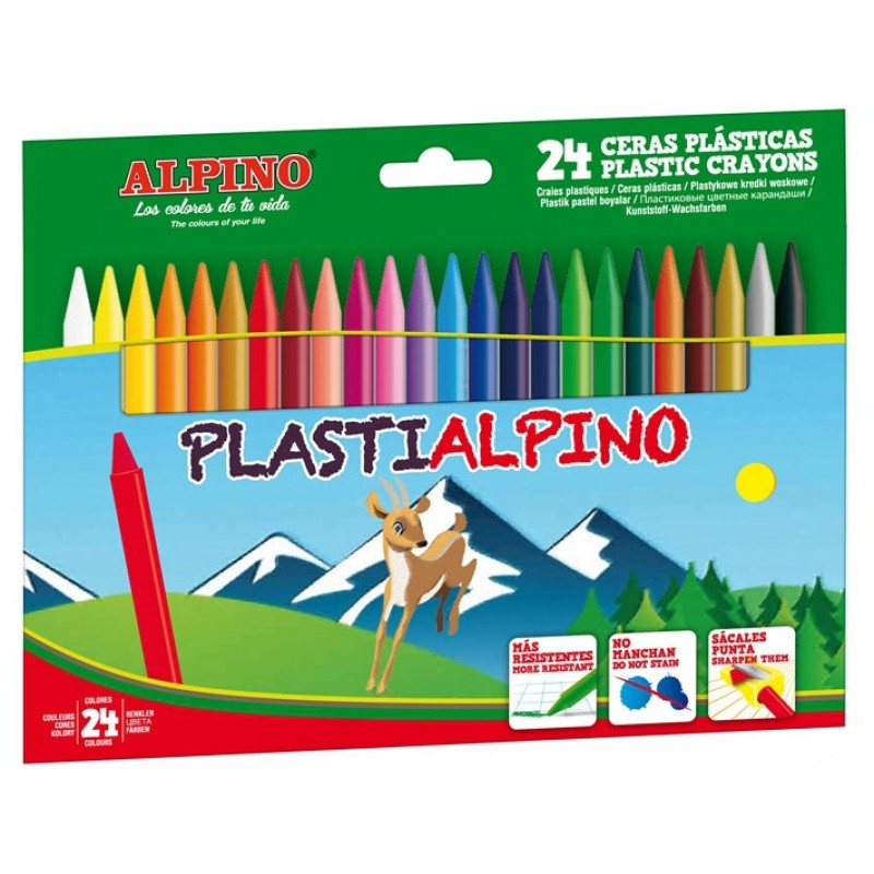 Creioane cerate din plastic, cutie carton, 24 culori/cutie, Plasti ALPINO