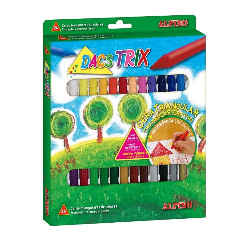 Creioane cerate soft, triunghilare, cutie carton, 24 culori/cutie, ALPINO DacsTrix