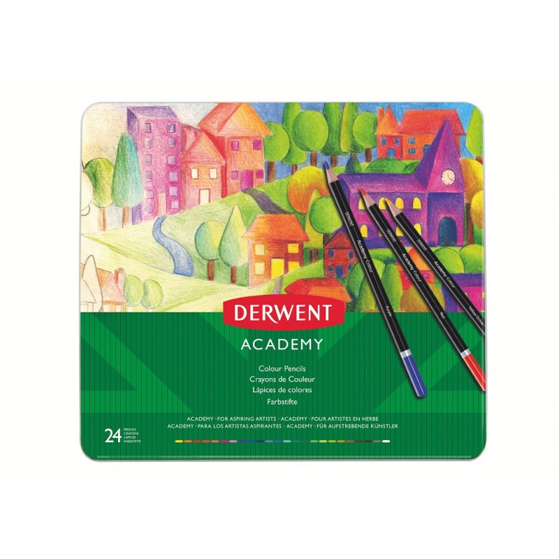 Creioane colorate DERWENT Academy, cutie metalica, 24 buc/set