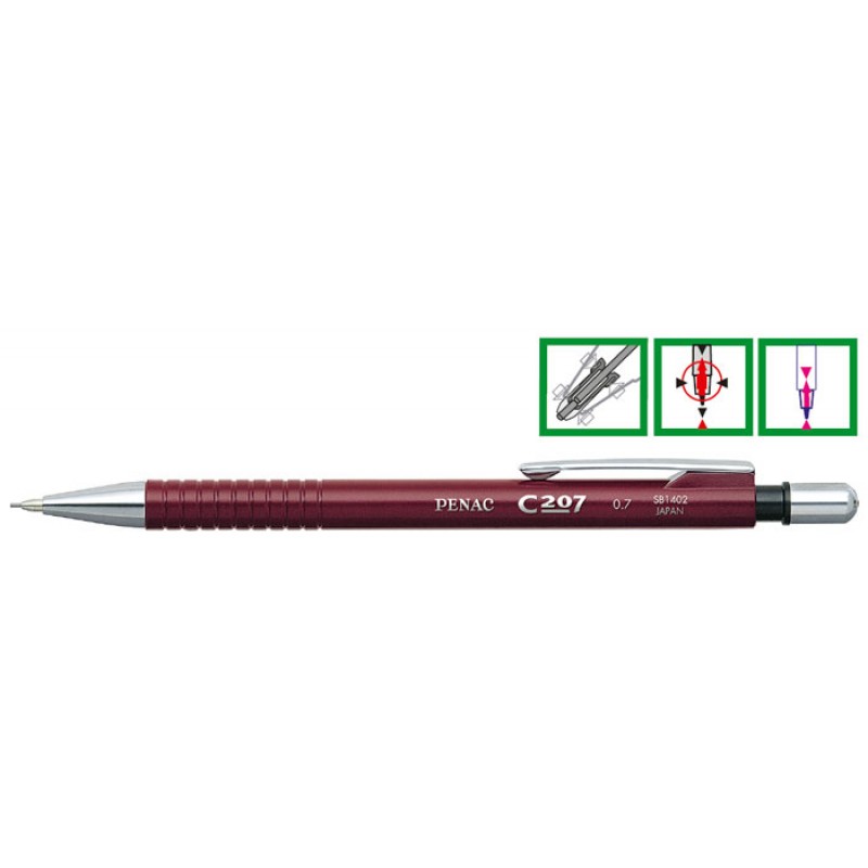 Creion mecanic PENAC C207, 0.7mm, con si accesorii metalice - corp bordeaux