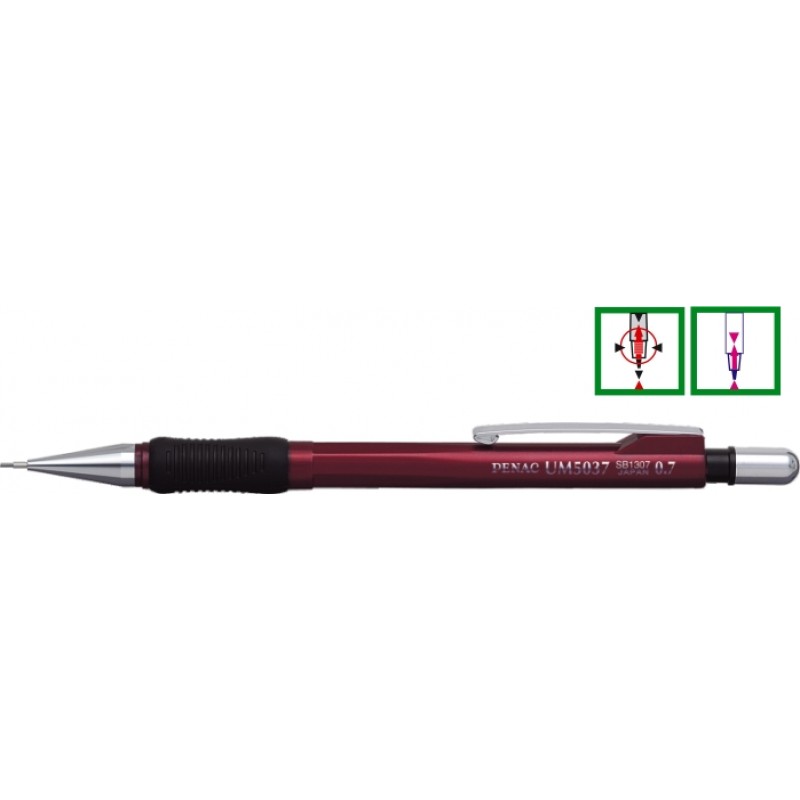 Creion mecanic profesional, 0,7mm, varf cilindric retractabil, PENAC UM 5037 - corp bordeaux
