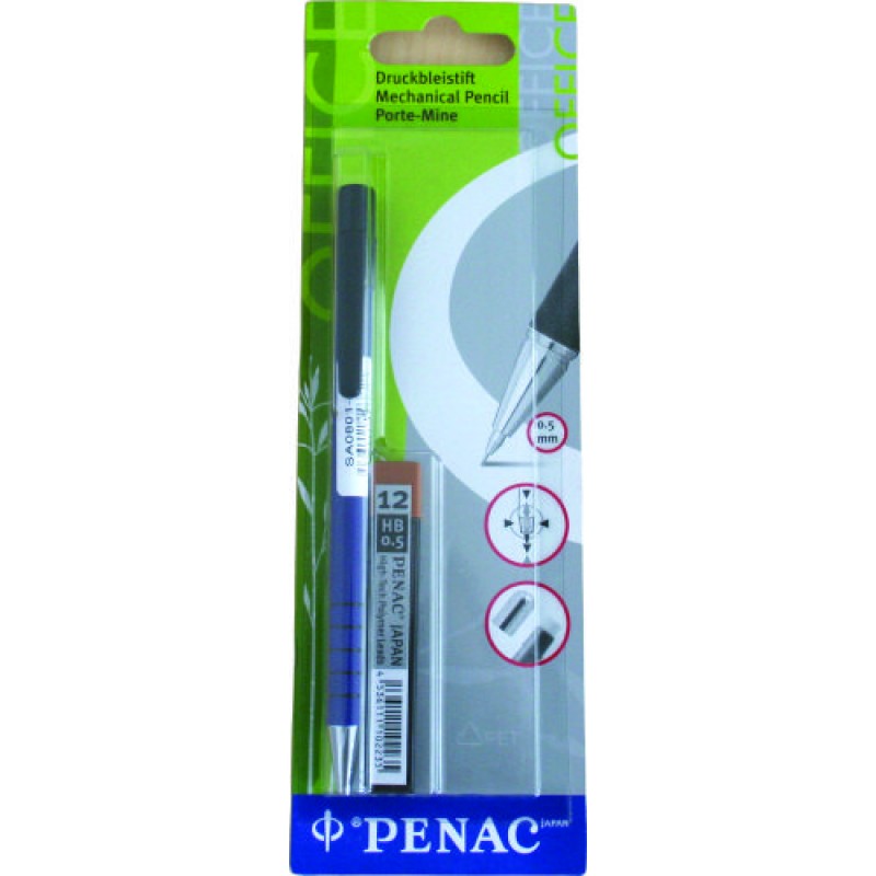 Creion mecanic rubber grip 0,5mm, con si varf metalic, PENAC RB-085M + rezerve mine 0.5