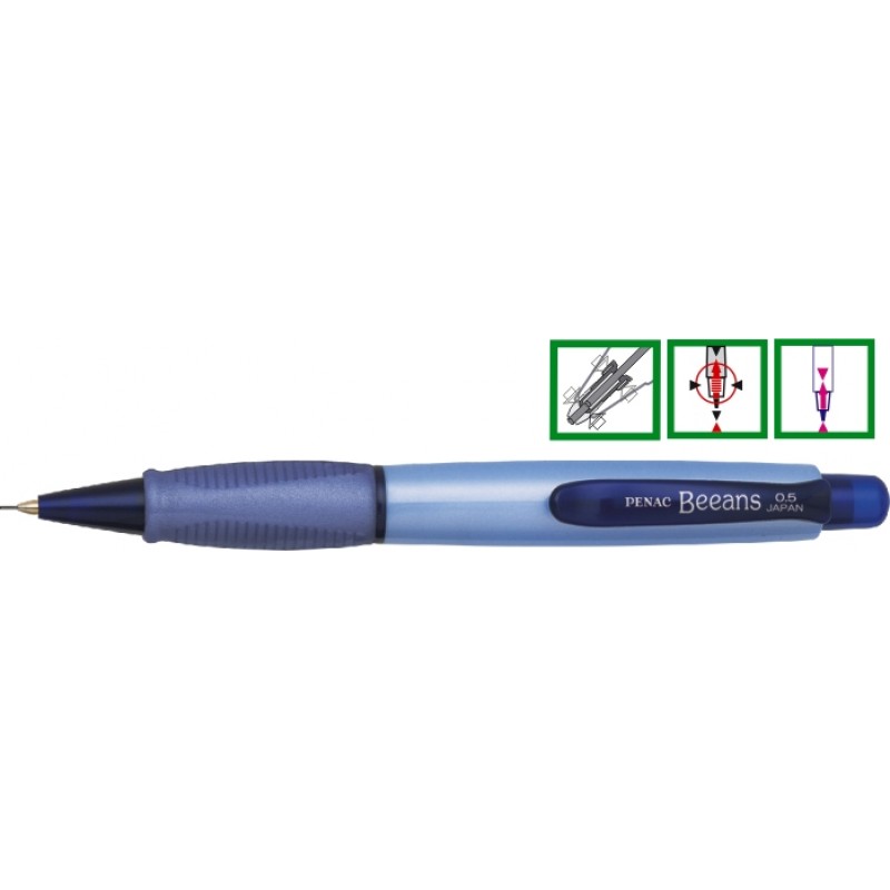 Creion mecanic rubber grip, 0,7mm, varf metalic, PENAC Beeans - corp albastru sidefat