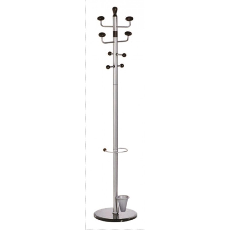 • Cuier metalic argintiu ALCO, 180/38cm, 8 agatatori metalice, accesorii lemn negru, suport umbrele