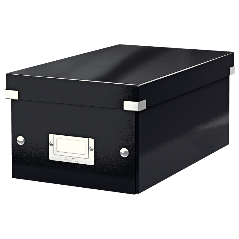 • Cutie depozitare Leitz WOW Click & Store, carton laminat, pliabila, cu capac, 20x14x35 cm, negru