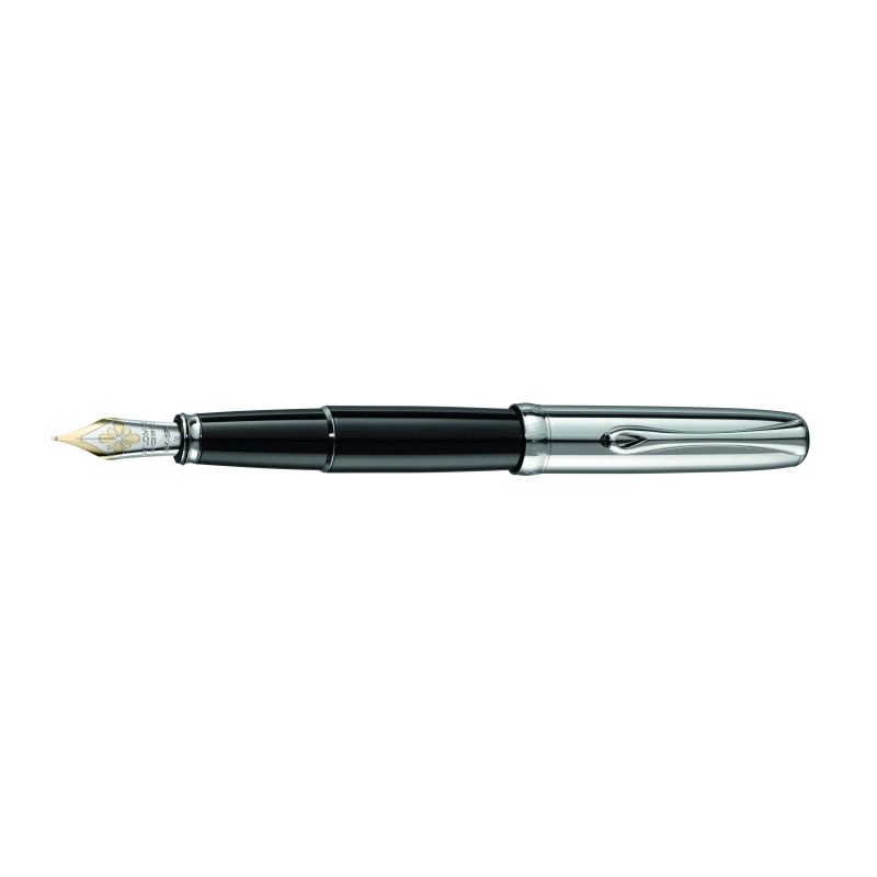 DIPLOMAT Excellence A - Black Chrome - stilou cu penita M, aurita 14kt.